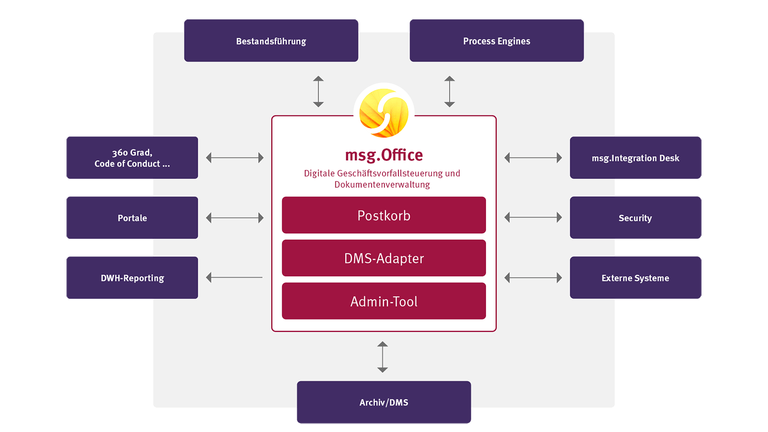 msg.Office ist eine Standardsoftware zur vollständig automatisierten Steuerung der Geschäftsvorfälle und Dokumentenverwaltung.