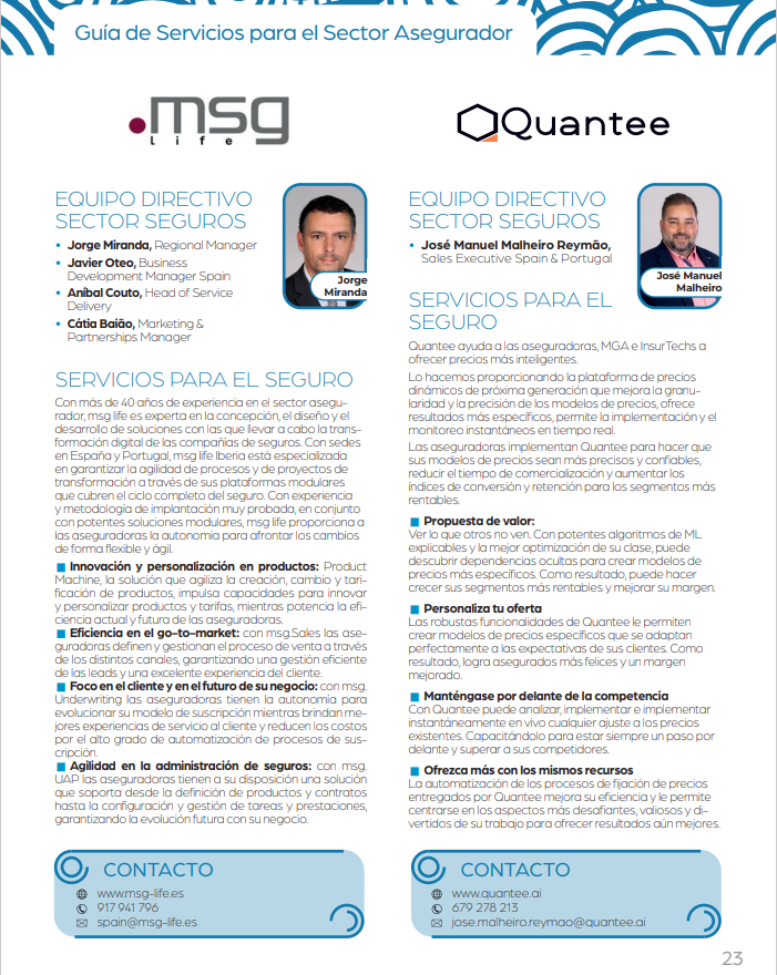msg life destacada en el Guía de Servicios para el Sector Asegurador, una publicación de Inese